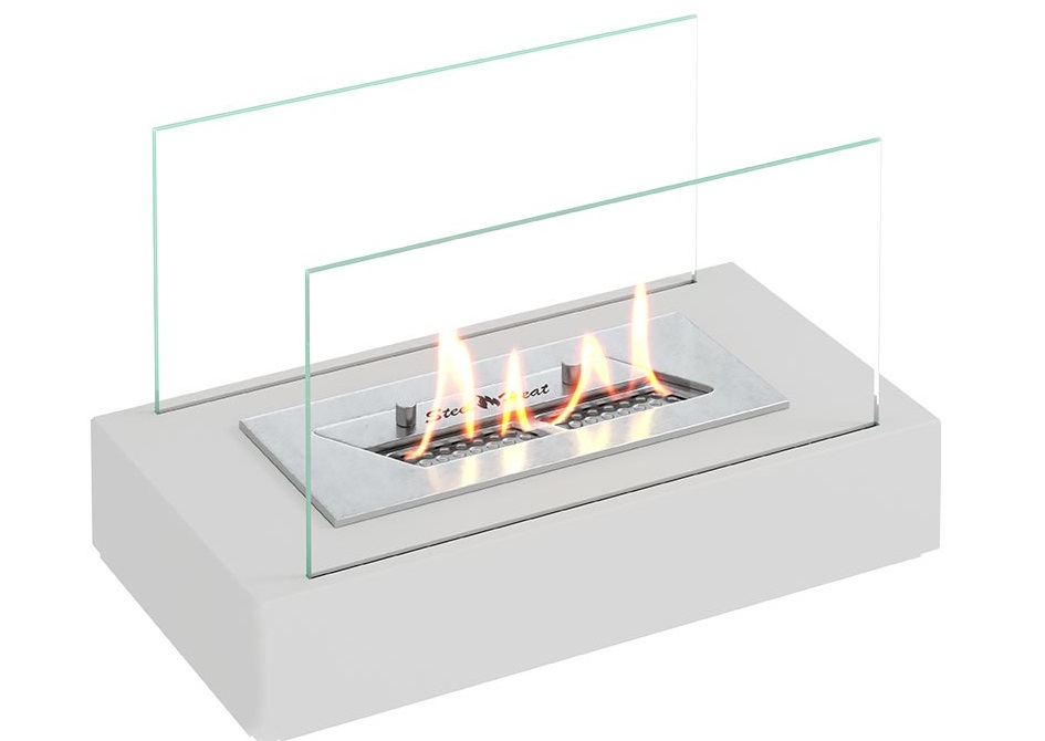 Белый — мягкий, нежный, отчасти нейтральный цвет. Он сочетается с классическим черным и любым другим оттенком. Например, такой биокамин привлечет внимание, если будет контрастировать с темной стеной. Нейтрально он смотрится в светлом интерьере. Встраиваемый белый камин в стенке такого же цвета станет с ней единым целым.